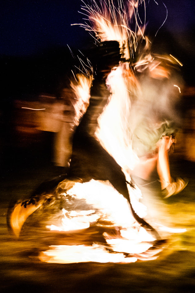 O primeiro é feito pulando por cima do «fogo vivo» (fogo criado por meios naturais, com método historicamente tão atestado quanto possível).